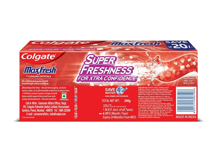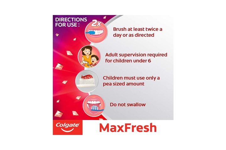 Colgate MaxFresh Spicy Fresh Gel Toothpaste comes with cooling crystals which help in keeping you refreshed for a long time. Experience intense cooling and a refreshing blast of flavor to transform your day and fight cavities at the same time. It keeps germ build-up at bay and maintains a healthy and refreshing oral hygiene.