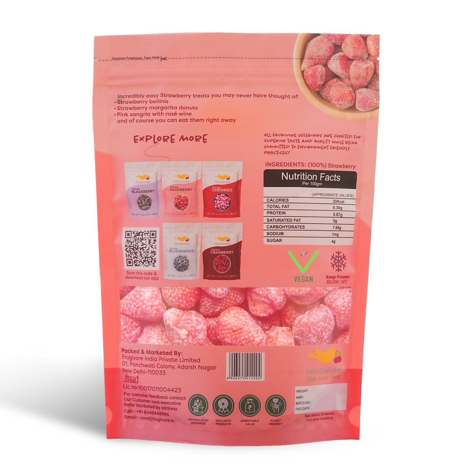 Frugivore's Frozen berries are a nutritional powerhouse, offering a range of health benefits. Packed with antioxidants, they help protect against chronic diseases. Our frozen berries are a fantastic source of vitamin C, which supports immune system health and serves as a strong antioxidant. Our frozen berries are now available in single packs, mingle packs, standard packs, and family packs. These single and mixed packs are the first in the market. A single package is for single usage by one person, and mingle packages are for single usage by two people. To extend their shelf life and maintain their nutritional profile, Frugivore's frozen berries are individually frozen using the most recent IQF Technology.